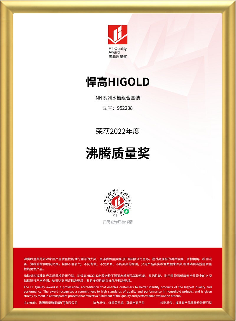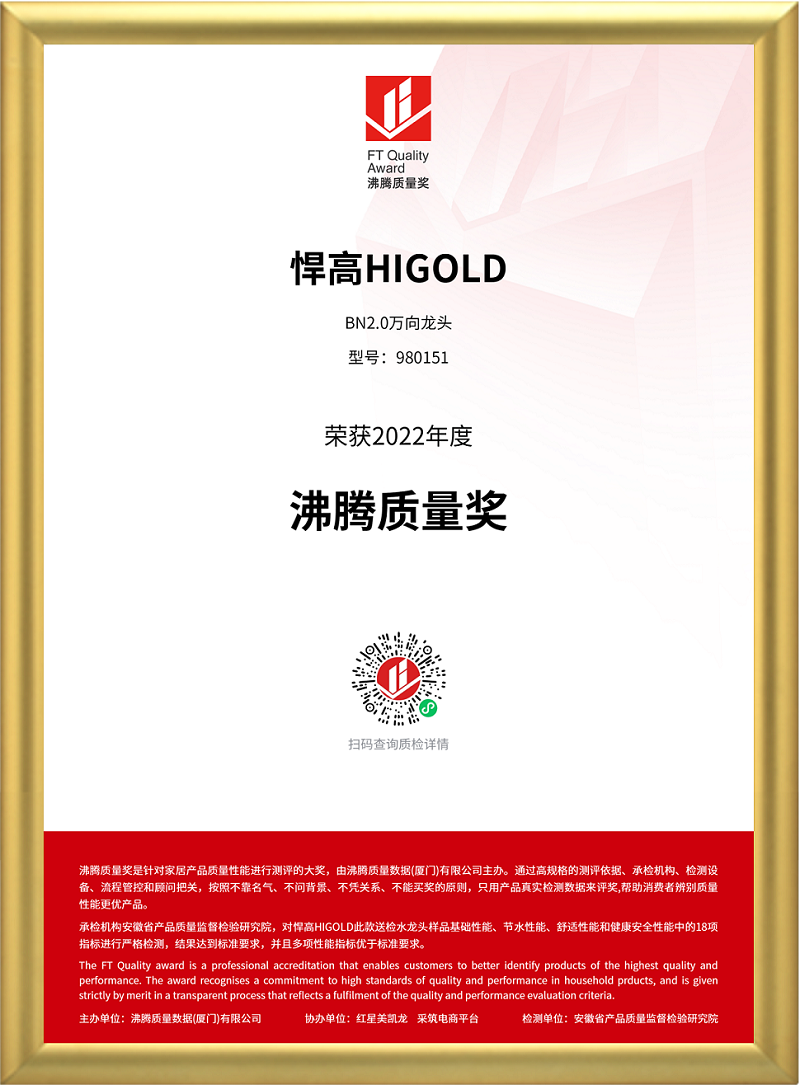 近期,2022上半年度沸騰質量獎獲獎結果重磅揭曉。悍高憑借卓越的產品質量,從國內外一眾家居品牌中脫穎而出,參評的BN2.0萬向龍頭和NN系列水槽組合套裝雙雙榮膺2022“沸騰質量獎”,再次印證悍高品質硬實力。