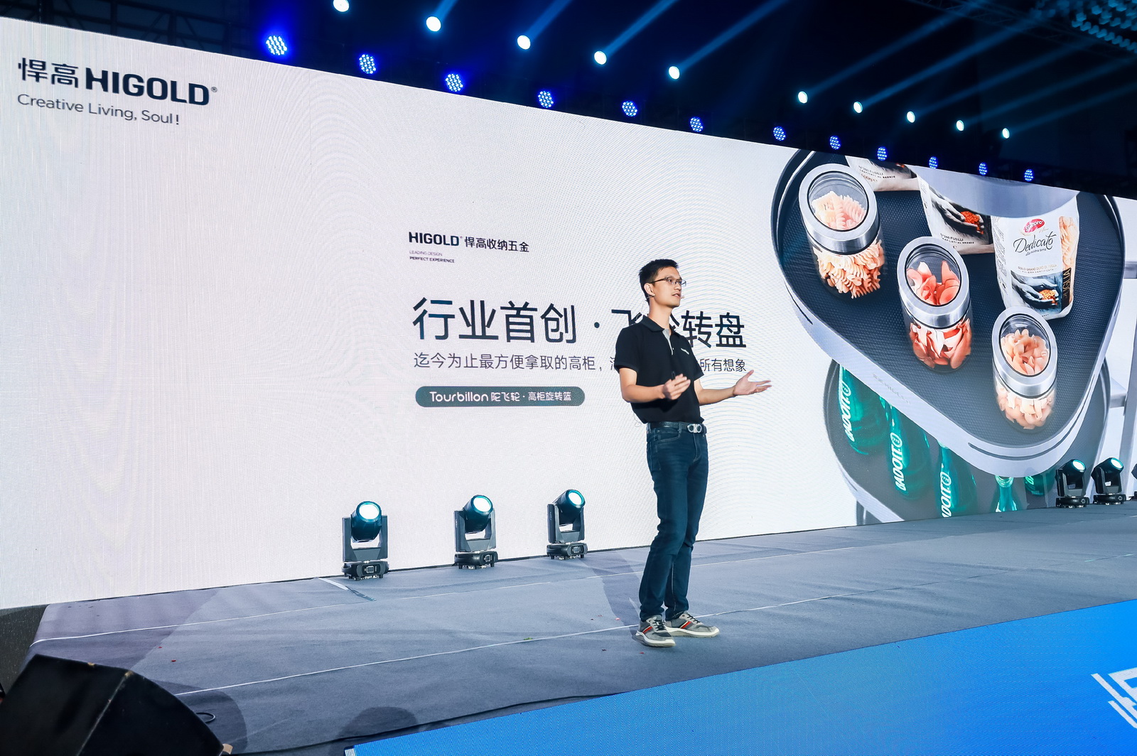 在發布會上由功能五金事業部帶來一批2022年的重磅新品:不銹鋼板式拉籃之皇的“藝術之作”基多拉、轉盤可360°旋轉的高柜旋轉拉籃陀飛輪以及斬獲紅點設計大獎和IF設計大獎雙項國際設計大獎的希勒4.0。