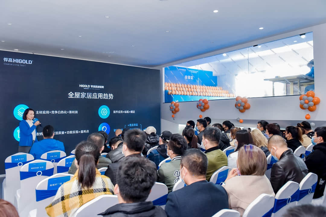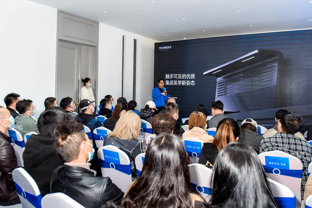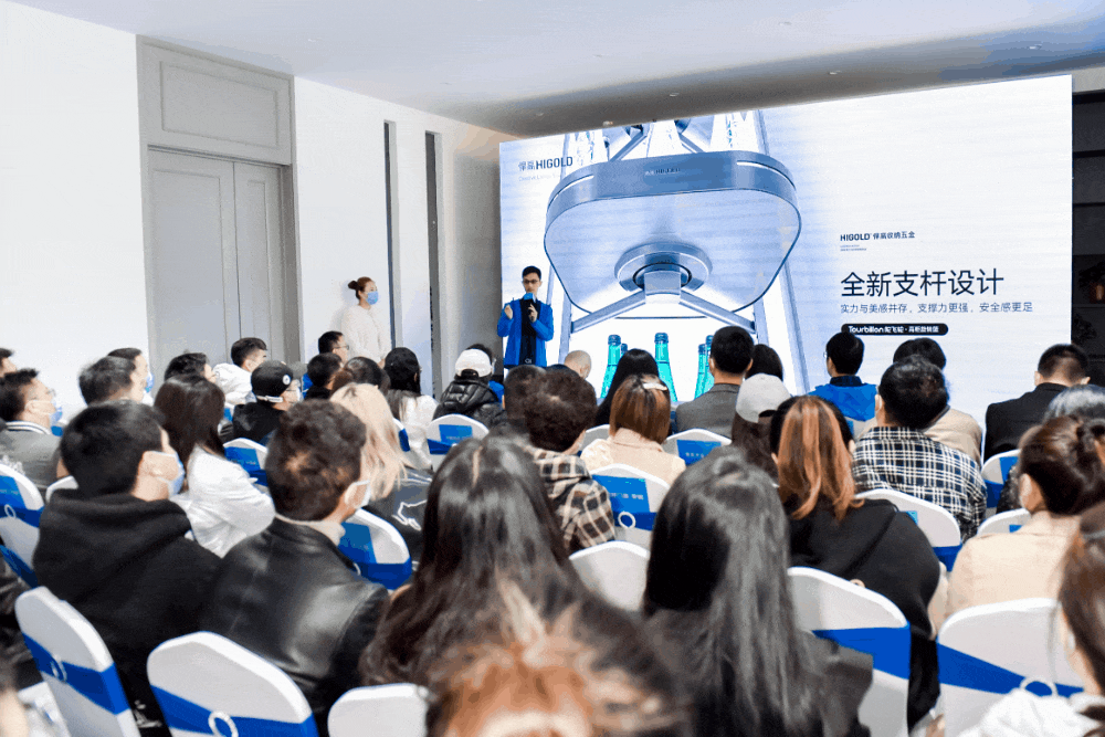 在新品品鑒會上,分別由悍高集團功能五金事業部、智能廚具事業部、裝飾五金事業部、智能廚電事業部的負責人們演講發布悍高2022年新品,帶領到場的嘉賓和客戶探索多元的五金美學符號,感受低調奢雅的設計之美。