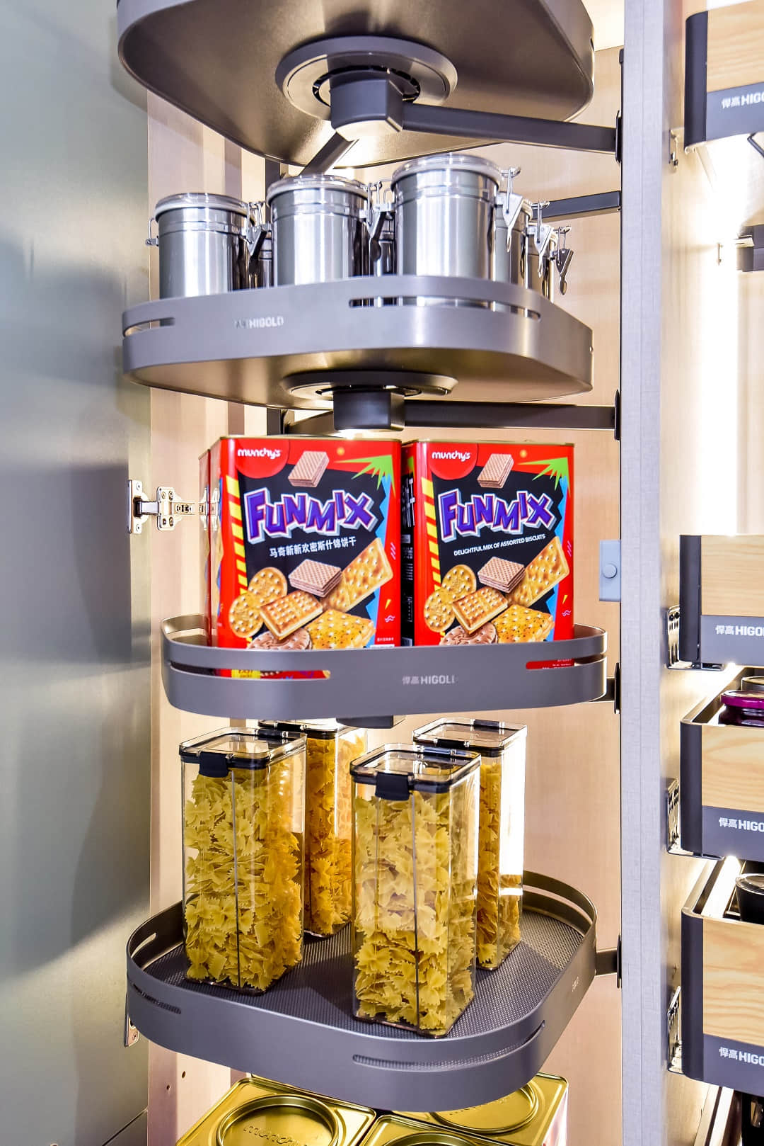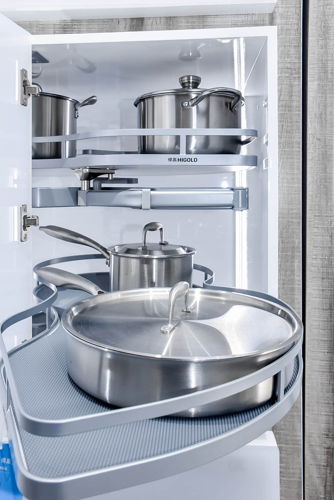 比如有云感升降、高柜取物便捷的星云升降機、行業首創的360°高柜旋轉拉籃陀飛輪以及榮獲紅點設計大獎和IF設計大獎的雙項國際設計大獎的希勒4.0系列拉籃;有重塑廚房收納空間、一槽整合多項廚房工作的厚面板單槽BL2.0水槽、0.6cm纖薄窄槽的柔光嵌入式槽燈等系列的明星產品。