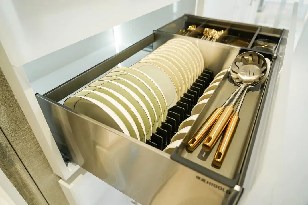 產品的每一次煥新,都是一次美智躍階,一次邊界破局。全新力作希勒6.0mini和星鏈2.0拉籃多維升級,細節之中皆是極致考究,讓廚房收納重啟新境;斬獲國內外多項設計大獎的陀飛輪高柜旋轉拉籃與生活詩意碰撞,行業首創的360°轉盤,開辟取放舒適區;轉角收納新勢力希勒飛碟3.0突破國外技術壟斷,創新單臂結構搭配飛碟造型,將未來感的收納實用主義效果拉滿。