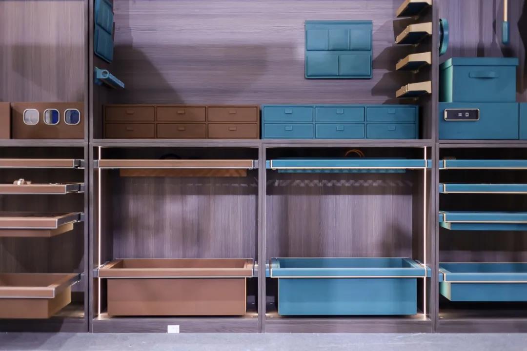 悍高五金展廳衣柜收納系列驚艷新品——BV系列,全新摩登配色——莫蘭綠與高級(jí)灰,低調(diào)矜貴盡顯含蓄之美,重新定義家居美學(xué),一改傳統(tǒng)冰冷五金金屬特性,觸感更柔軟更舒適,吸引眾多觀展者體驗(yàn)。