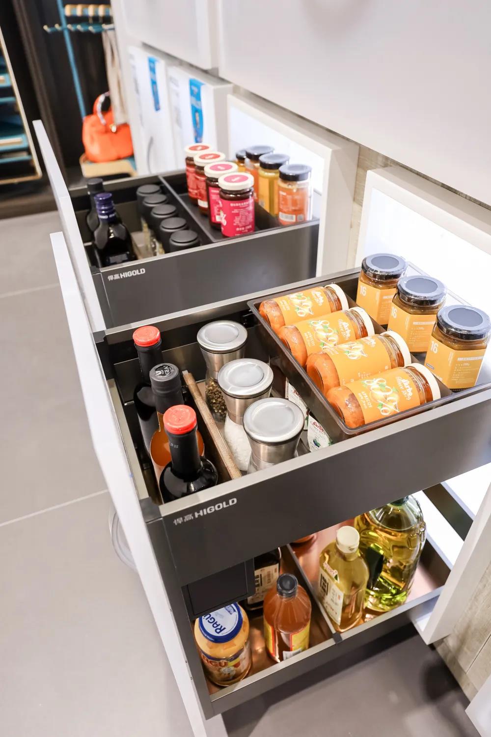 悍高廚房五金拉籃則賦予廚房空間全新的價值,多品類產(chǎn)品綻放,瞬間讓收納變得靈活起來,讓廚房每一寸空間都觸手可及。除了強大的收納功能,獨特的復(fù)古色系,立現(xiàn)簡約、高端風(fēng)范。