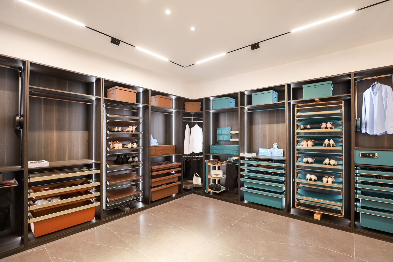 悍高臺州旗艦店以打破傳統展廳的刻板認知,融匯了時尚風格和流水動向的設計布局,從門頭門面到展廳布局全方位給您一次升華的感受,呈現出了一個會說話的高顏值展廳,簡約又兼備品味,整個展廳空間規劃分為廚房功能五金、衣柜功能五金、基礎五金、水槽龍頭、智能廚電、裝飾五金等,為您呈現一個安靜舒適的一站式五金解決方案選品空間。